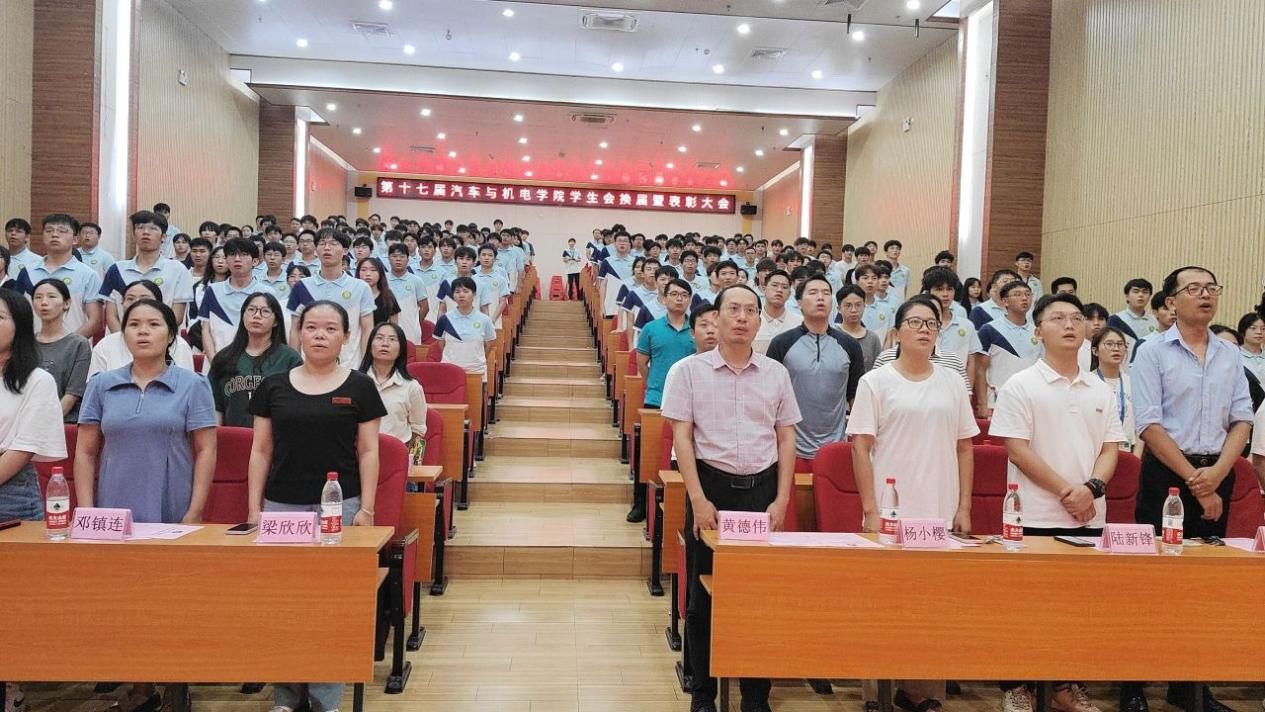 本次会议由黄钰程同学主持。会议到场的领导、老师分别是学校副校长黄德伟、汽车与机电学院副院长梁欣欣、汽车与机电学院党支部副书记邓镇连、汽车与机电学院分团委书记杨小樱、汽车与机电学院学生科科长李慧妹、汽车与机电学院全体辅导员,各二级学院学生会、社团代表。