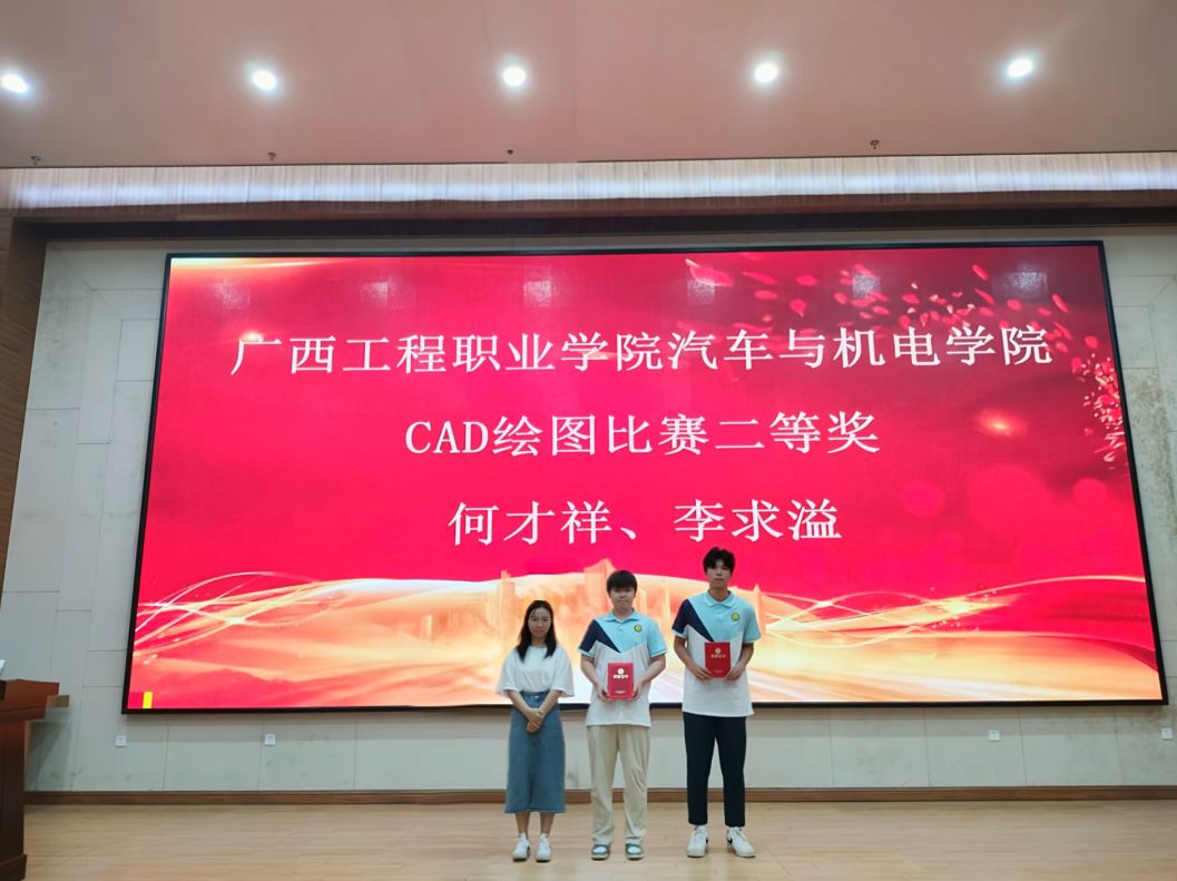 学生科科长李慧妹为获得CAD绘图比赛二等奖的参赛选手颁发证书
