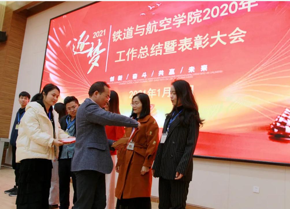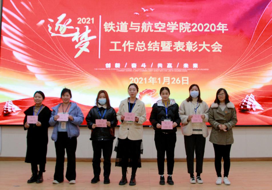 会上,罗丹主任宣读《铁道与航空学院2020年度表彰决定》,黄羽、宋蓉、刘世伟三位老师被评为“优秀辅导员”,潘芳连、谢锡洁、杨竟、卢桂玉四位老师被评为“优秀教师”;黄晶晶、韩姣龙、黄韵、徐琳、吴婷婷、陈璐等六位教师荣获鼓励奖。随后,彭高彬副校长、覃清香副院长为受到表彰的先进个人颁奖并合影留念。