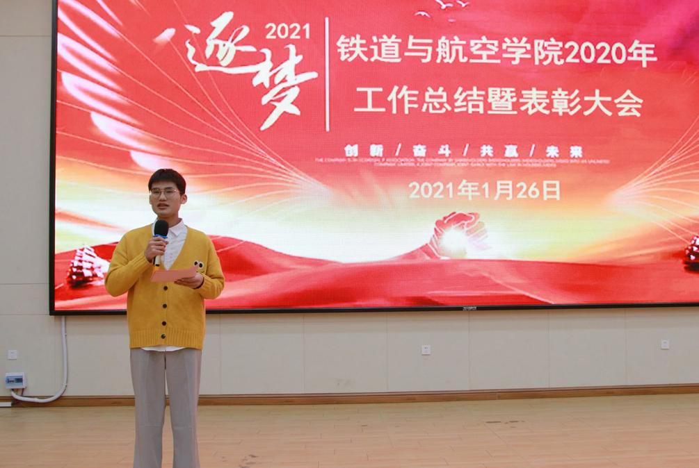2021年1月26日下午,学校图文信息大楼报告厅欢声笑语,热闹非凡,铁道与航空学院2020年度工作总结大会在这里举行,大会总结过去一年的工作成绩,表彰贡献突出的先进个人,全体参会的教师还现场抽取幸运奖,提前感受热闹的年味。