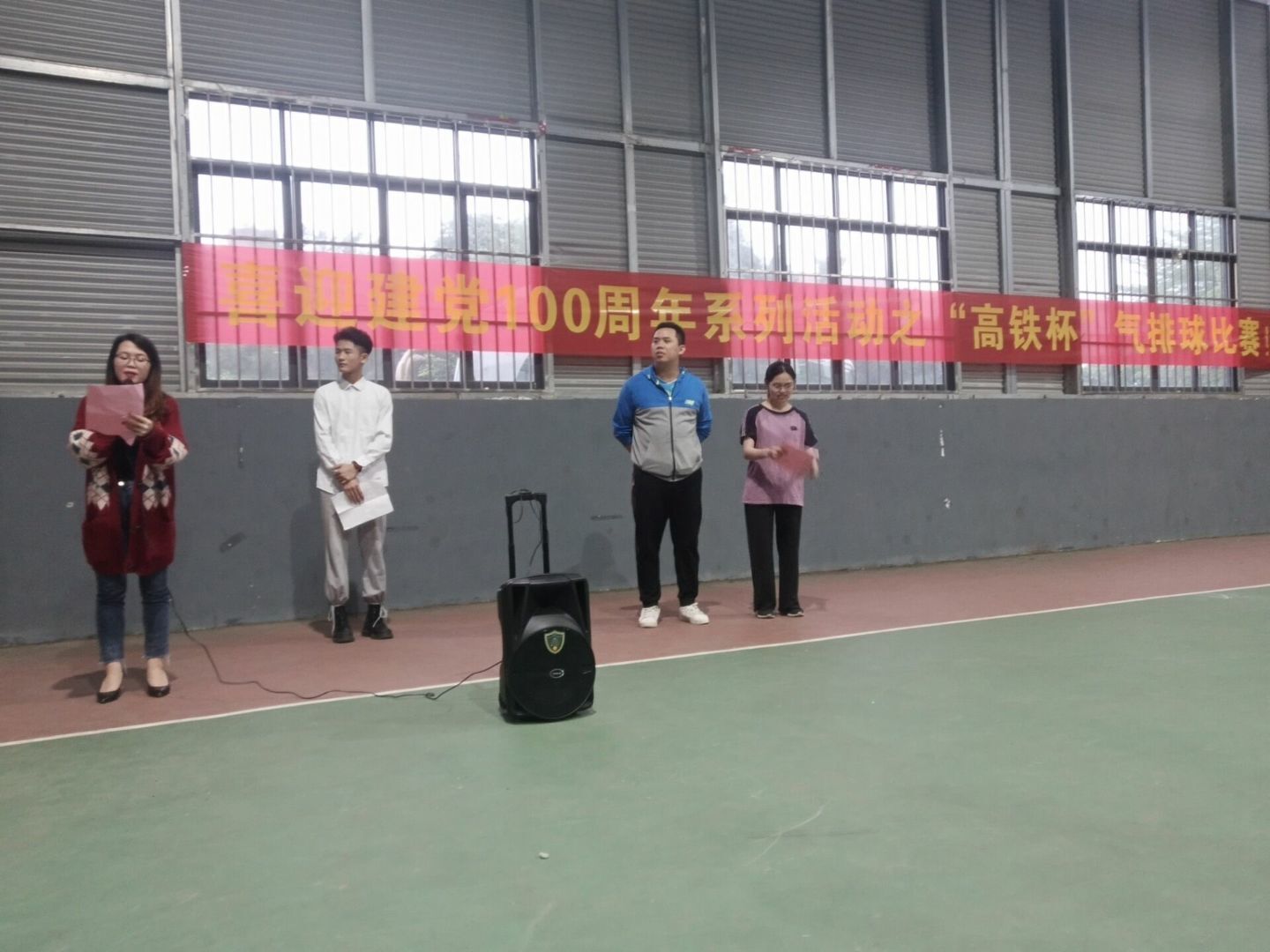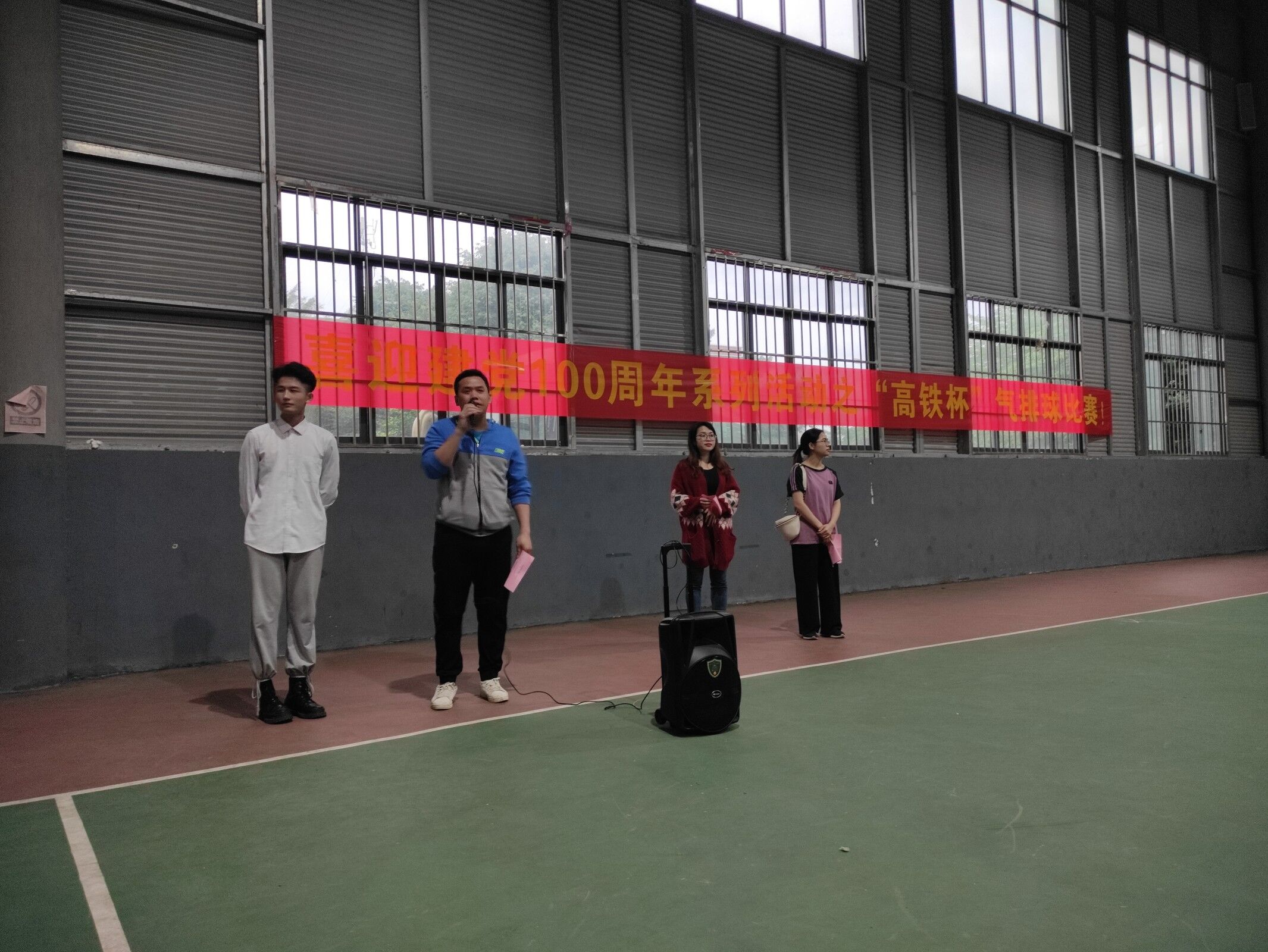 铁道与航空学院分团委书记黄羽宣读比赛规则后,“喜迎建党100周年系列活动之第一届‘高铁杯’气排球比赛”正式开始。