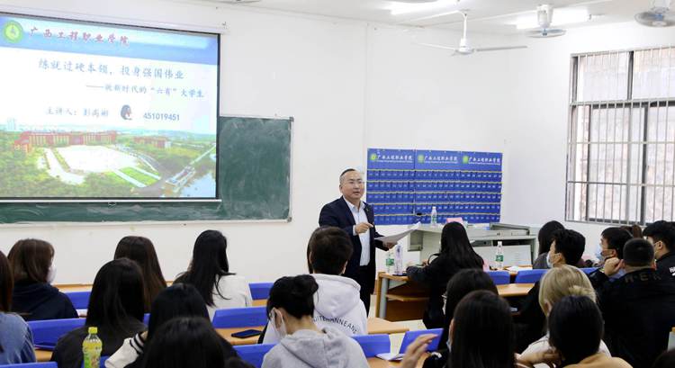 学校党委委员、副校长彭高彬作“练就过硬本领,投身强国伟业—做新时代的‘六有’大学生”的专题培训