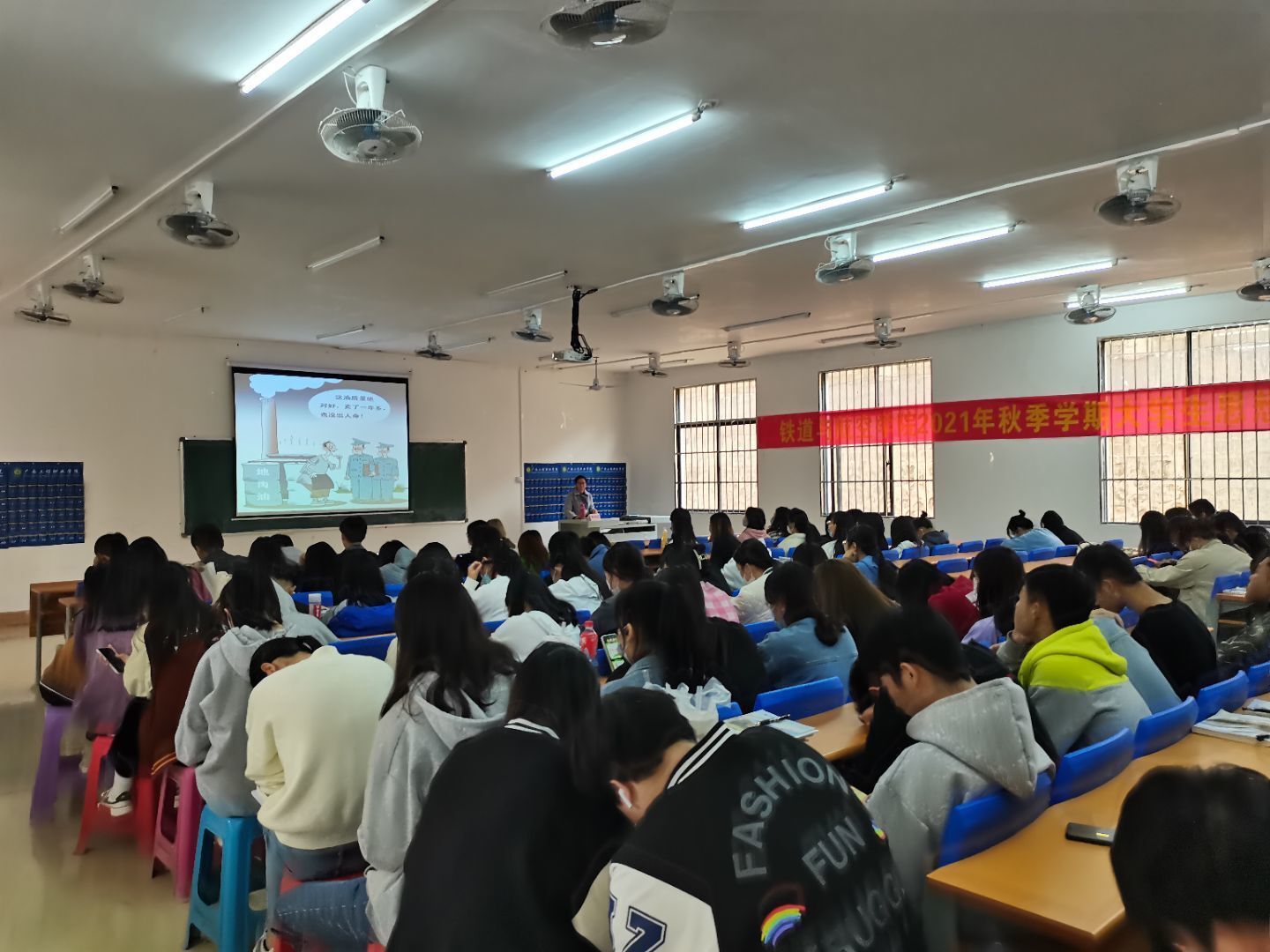 培训会上,副院长覃凤姣作主题为“加强安全防范,提高安全意识”的专题培训会,她把相关安全知识分六个阶段进行讲解,并通过视频案例分析,通俗易懂,动之以情,以真实案例警醒同学们要增强忧患意识,加强安全管理。