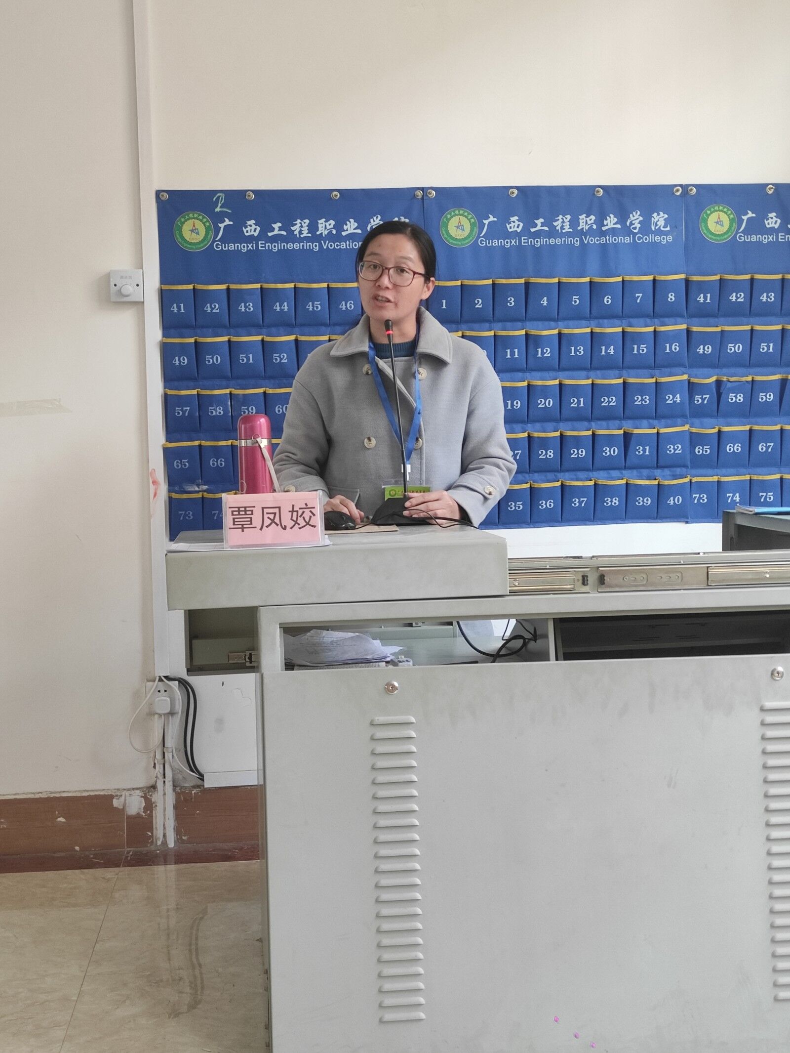 学生科科长谢小玲作“明制度,强信念,做合格大学生”专题培训会
