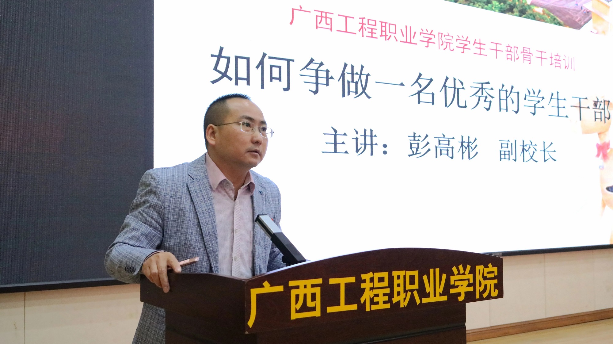 彭高彬副校长作题为《如何做一名优秀的学生干部》的开班第一讲