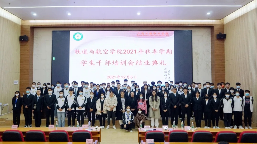 为进一步加强学生干部队伍建设和凝聚力、战斗力,提高学生干部的思想政治素质、工作能力和创新能力,确实落实青年马克思主义者培养工程的基层工作,12月4日—5日,铁道与航空学院在图文信息大楼报告厅举行主题为“明责任•增才干•做精英干部”的2021年秋季学期学生干部培训班。学校党委委员、副校长彭高彬,铁道与航空学院党支部书记、副院长覃凤姣,铁道与航空学院学生科科长谢小玲出席开班仪式,铁道与航空学院全体2020级、2021级学生干部参加了此次培训。