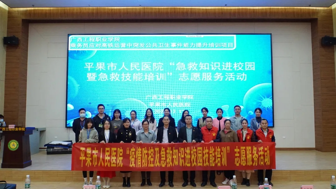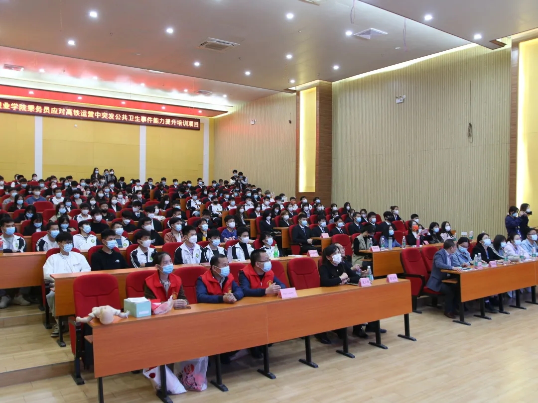 为进一步提升学生应对突发公共卫生事件的能力,巩固专业知识,有效预防、及时控制和消除突发公共卫生事件的危害,保障乘客身体健康与生命安全,维护正常的社会秩序。我院联合平果市人民医院于12月17日下午在校图文信息大楼三楼学术报告厅开展乘务员应对高铁运营中突发公共卫生事件能力提升培训活动暨平果市人民医院“急救知识进校园”、“急救技能培训”志愿服务活动 。