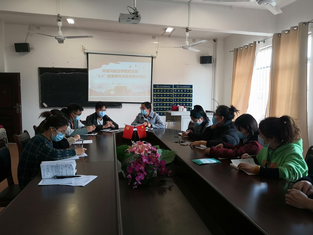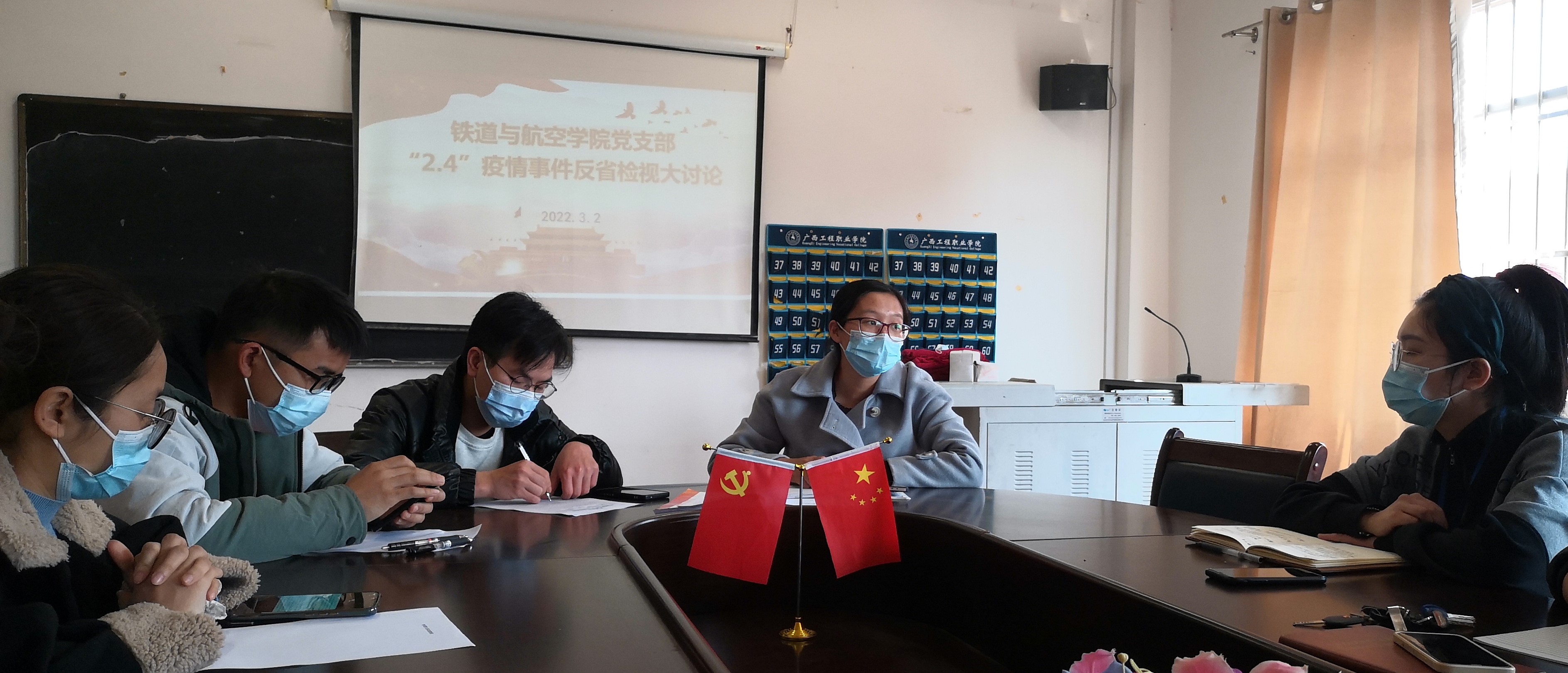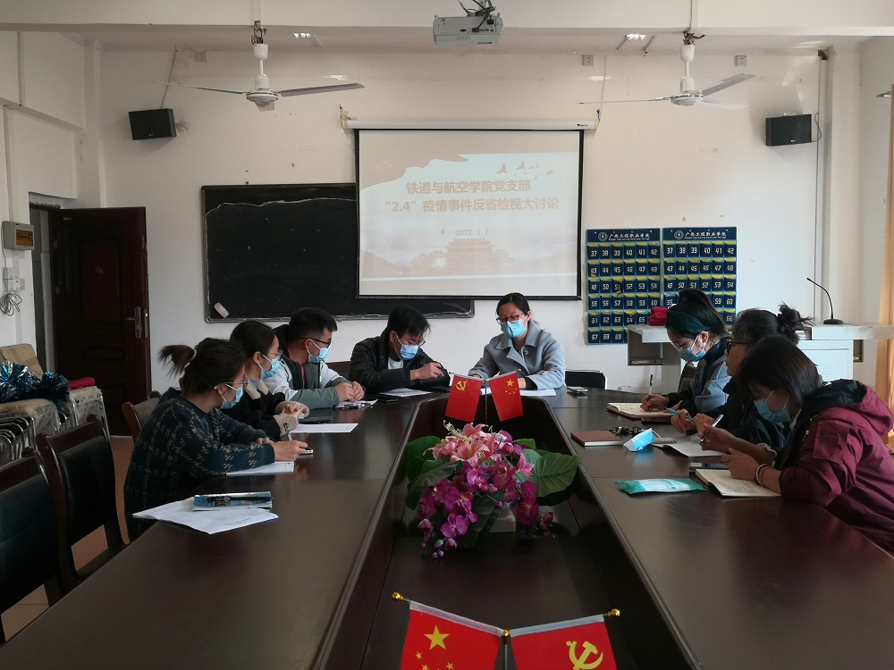 铁道与航空学院党支部根据《百色市委教育工委关于开展“2·4”疫情事件反省检视大讨论的通知》有关要求,结合本支部的实际情况,于3月2日下午以党支部大会的形式在铁道304开展了“2·4”疫情事件反省检视大讨论活动,铁道与航空学院党支部部分党员及教师代表参与此次活动。