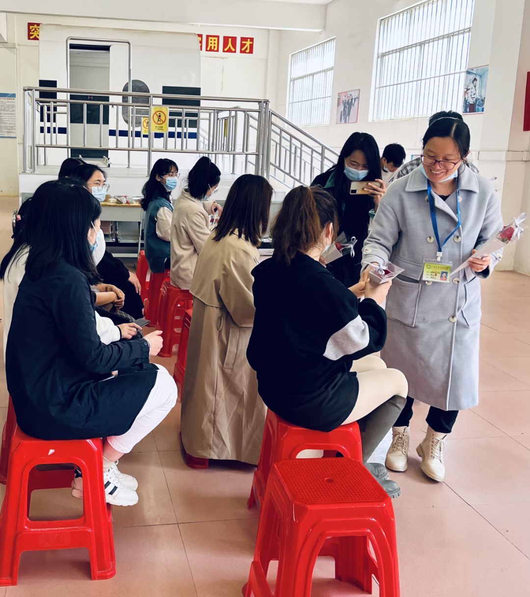 铁道与航空学院副院长为学院女教师赠送鲜花