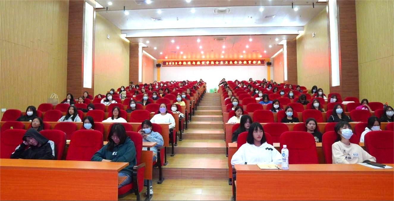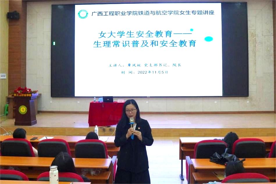 学院党支部书记、院长覃凤姣作题为《女生卫生安全教育》的专题培训