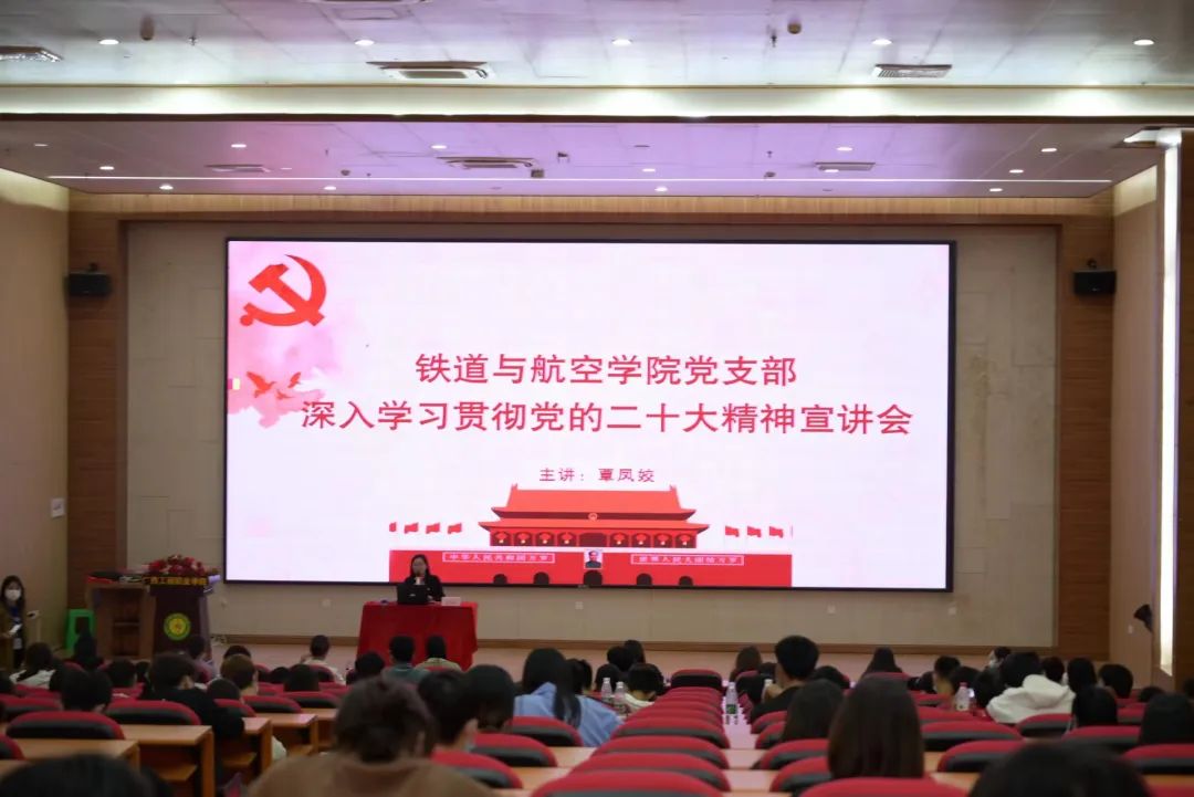 为了把学院党员干部师生的思想和行动统一到党的二十大精神上来,把智慧和力量凝聚到落实党的二十大确定的各项任务上来,为学校的建设发展凝心铸魂砥砺奋进。11月24日下午,铁道与航空学院党支部在图文信息大楼一楼学术报告厅召开深入学习贯彻党的二十大精神宣讲会,学院全体党员干部师生参加此次宣讲会。