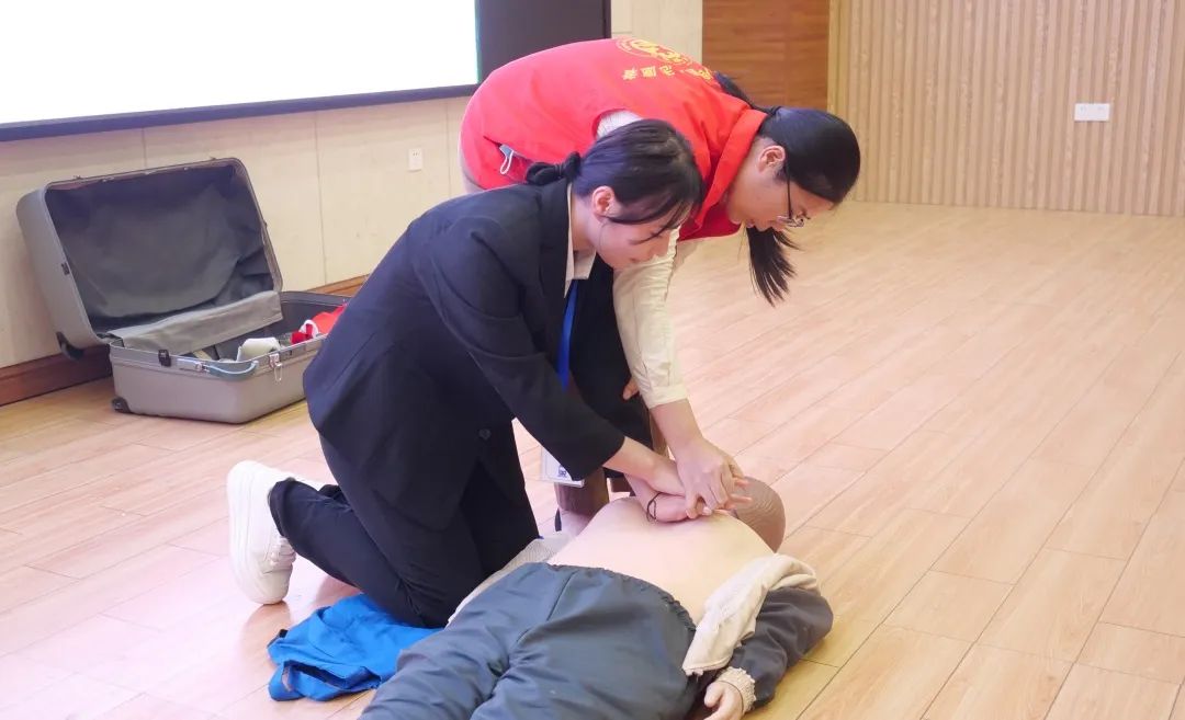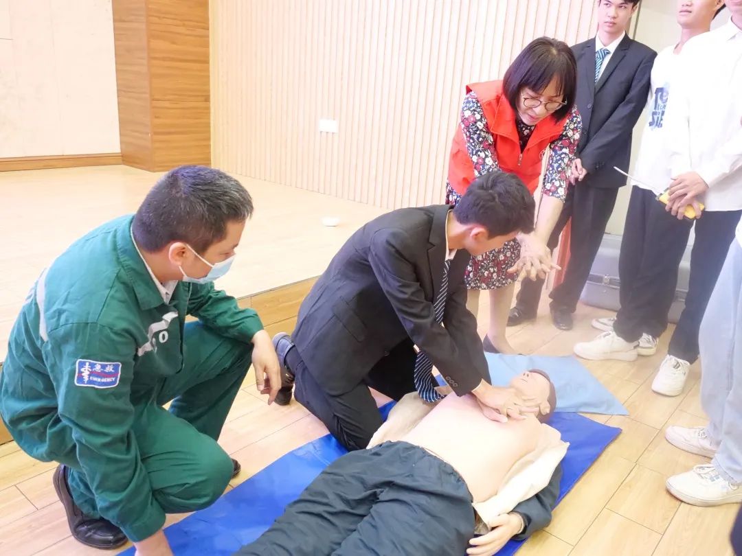医护人员手把手教授学生心肺复苏技巧
