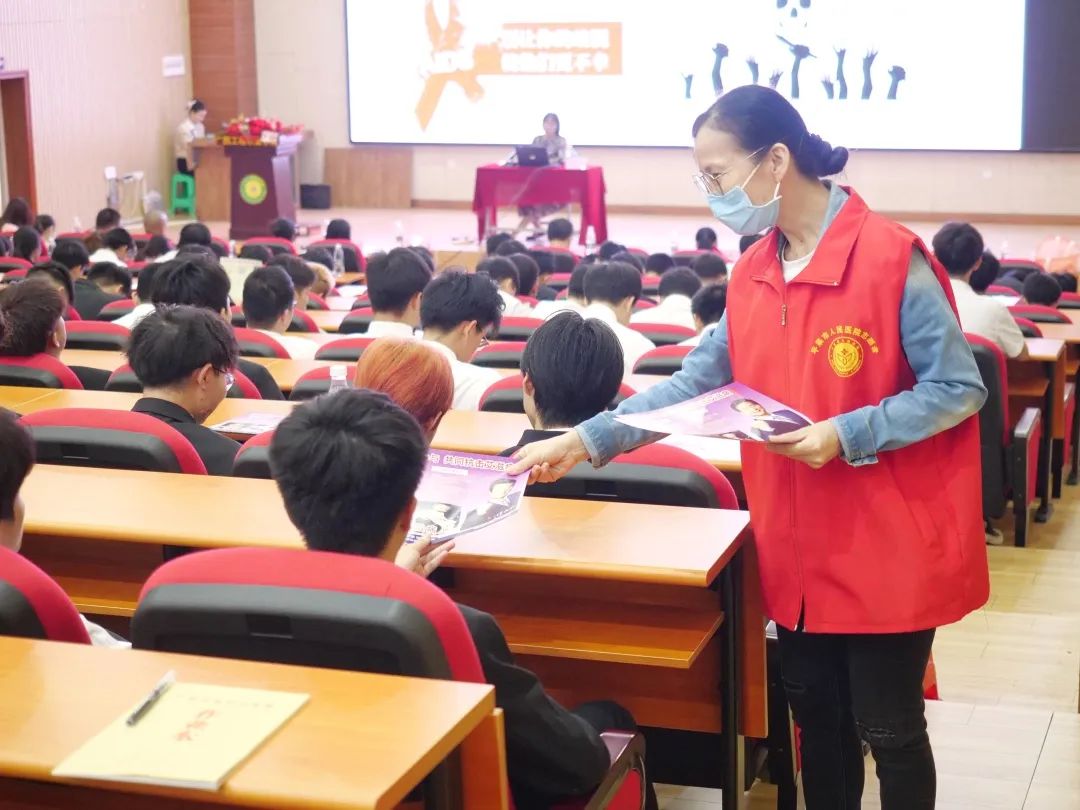 其次,平果市人民医院第二十党支部书记宋丽红为同学们讲授艾滋病相关知识。她在会上给学生列举毒品的样式,提出吸食毒品毁灭自己,祸及家庭,危害社会十二字真言。也通过毒品引出艾滋病,让同学们知道毒品是传播艾滋病的温床,告诫学生要正确认识艾滋病,预防艾滋病,远离毒品,珍爱生命。