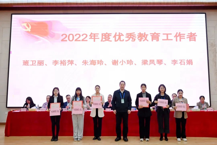 蒙本曼书记为荣获优秀教育工作者的教师颁奖