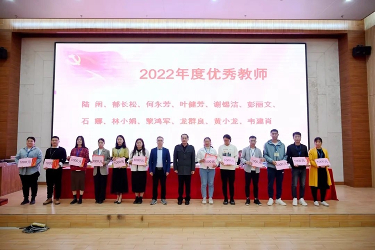 副校长吴先夏、黄德伟为荣获优秀教师称号的教师颁奖