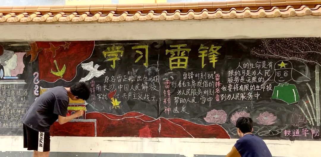 雷锋精神驻心中,妙笔生花颂美德。铁道与航空学院开展以“传承雷锋精神、争做时代新人”为主题的黑板报评比活动。同学们用自己手中的粉笔,描绘出心目中的雷锋形象,笔尖倾泻着向雷锋同志学习的心声,雷锋精神根植于同学们的内心,用心传递对英雄的敬意。