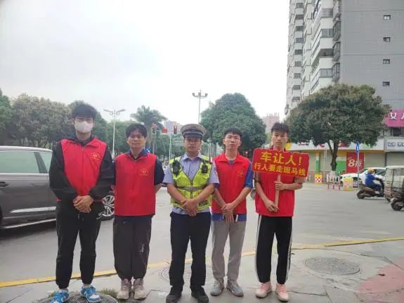 为践行社会主义核心价值观,深入开展学雷锋活动,培育新时代大学生的社会担当与使命。3月24日,铁道与航空学院22级城轨2班学生到平果市新时代红绿灯路口开展“文明交通劝导万人行”志愿活动。