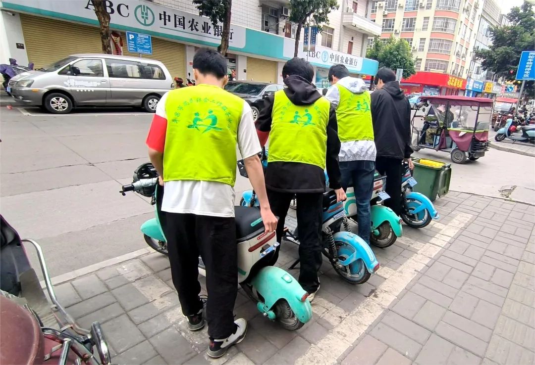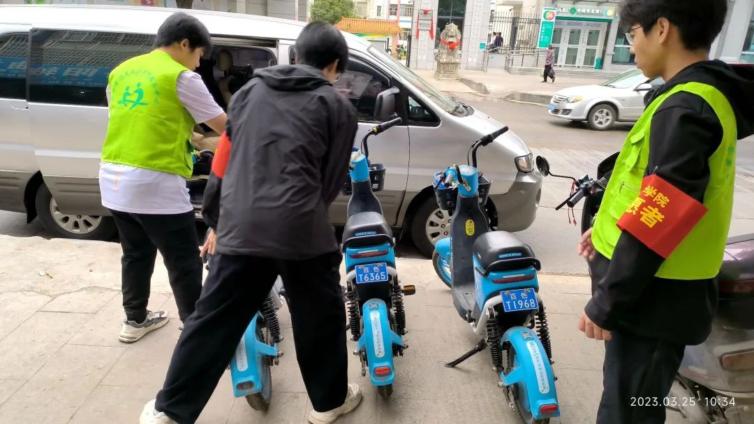 在活动过程中,同学们通过清理烈士陵园及周边街道的垃圾和摆放共享单车的形式为创建生态文明,构建美好社会贡献自己一份力量。用自己的实际行动传承雷锋精神。