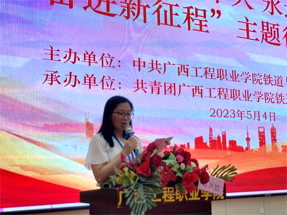 为深入学习贯彻习近平新时代中国特色社会主义思想和党的二十大精神,推动党的创新理论走进青年、深入人心。5月4日,铁道与航空学院在学校图文信息大楼一楼学术报告厅举行大学生党的二十大精神理论微宣讲比赛。铁道与航空学院党支部书记、院长覃凤姣出席比赛,铁道与航空学院大多数教师与学生到场观看比赛。铁道与航空学院党支部组织委员谢锡洁、铁道与航空学院党支部纪检委员黄家欢、铁道与航空学院党员教师梁春雨、卢桂玉、黄满秋担任此次比赛的评委。