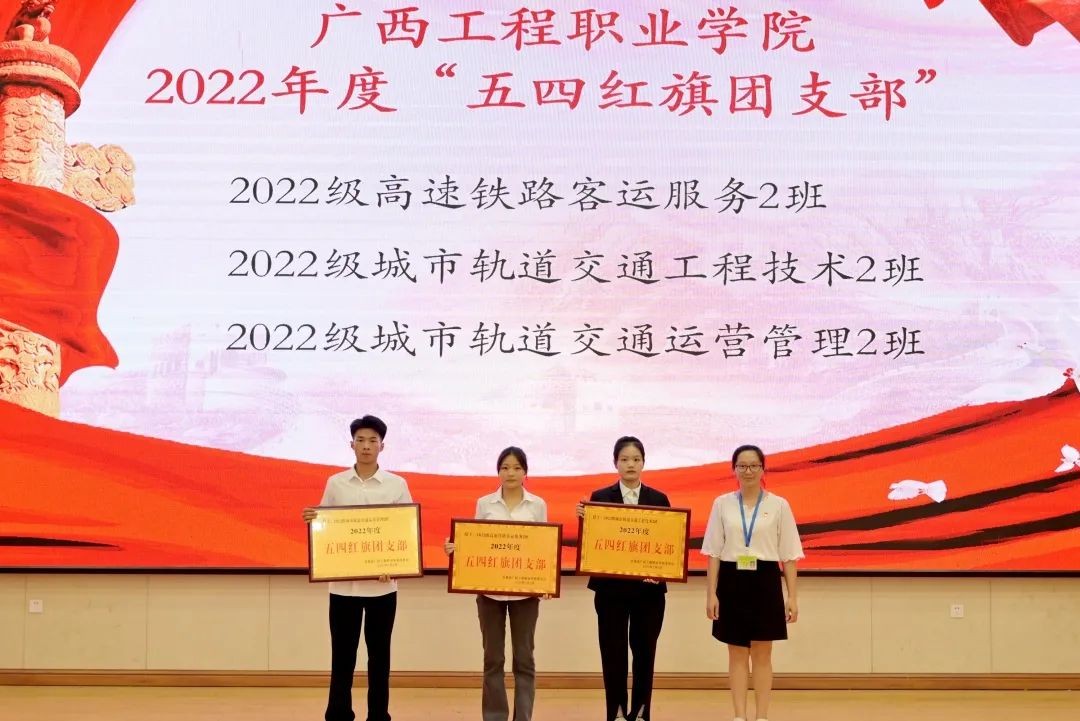 铁道与航空学院党支部书记、院长覃凤姣为获得beat365唯一官网2022年度“五四红旗团支部”的集体颁奖