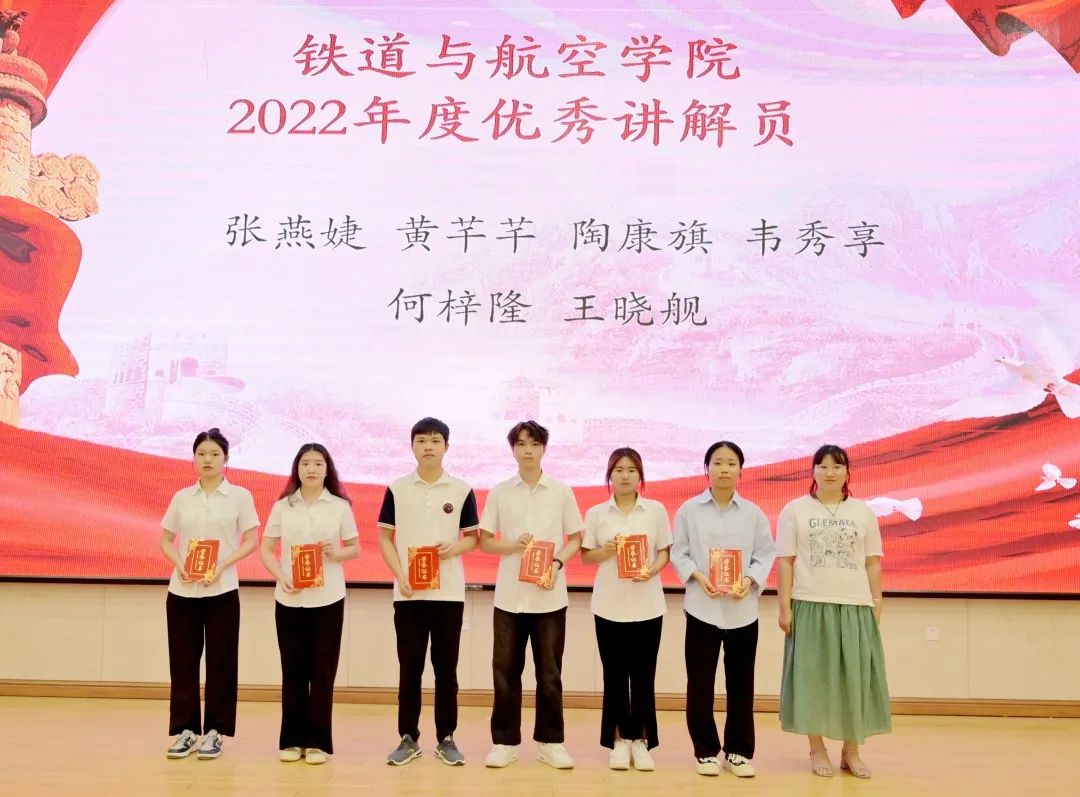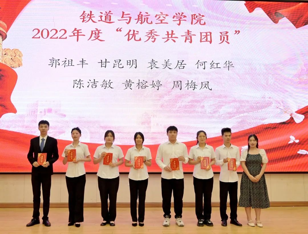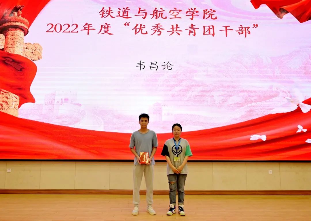 黄韵老师为获得铁道与航空学院2022年度“优秀共青团干部”的同学颁发荣誉证书