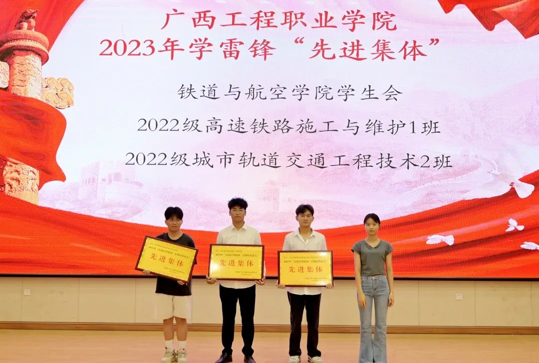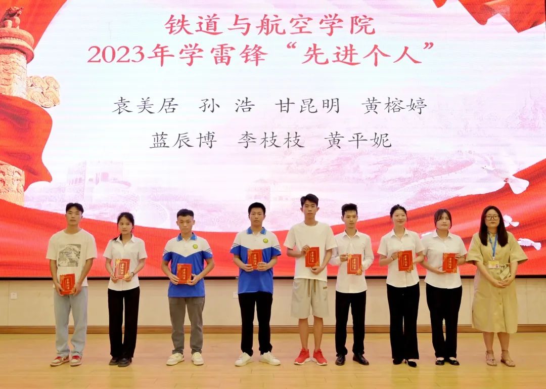 铁道与航空学院分团委书记谢小玲为获得beat365唯一官网2023年学雷锋“先进集体”的集体颁奖