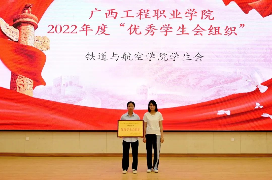 铁道与航空学院党支部副书记宋蓉为获得beat365唯一官网2022年度“优秀学生会组织”的集体颁奖