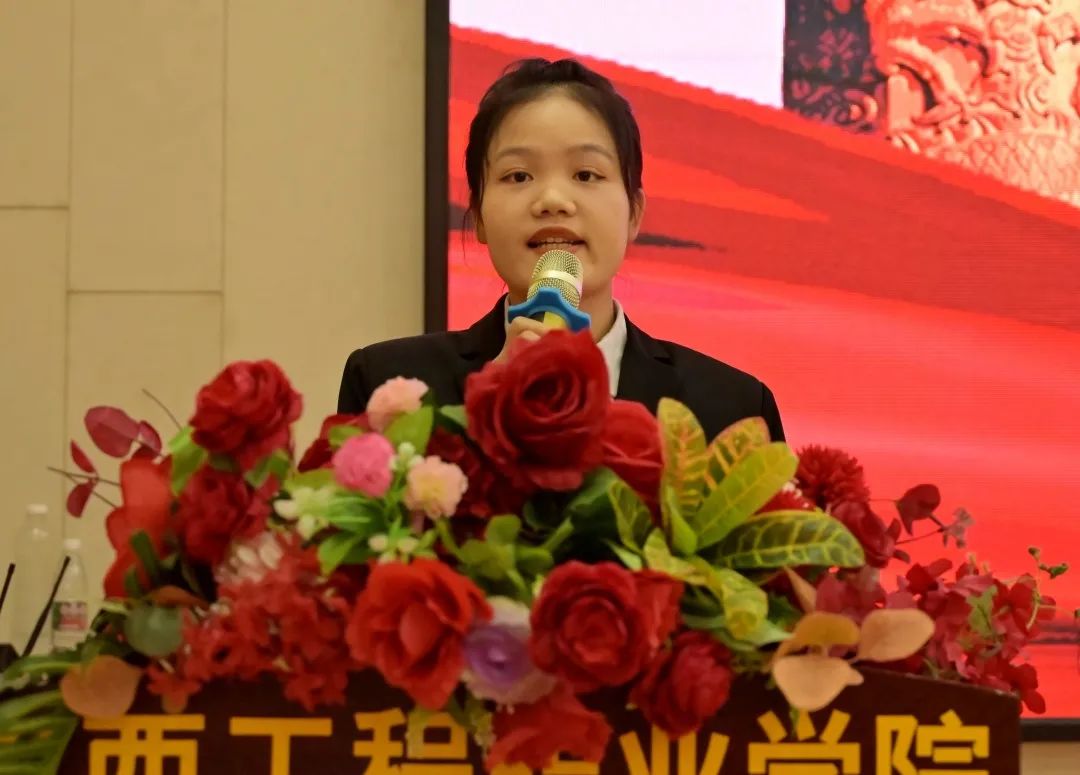 紧接着,学生代表潘玲容同学发言,她表示,青年强则国强,作为新时代的大学生,要继承和弘扬五四精神,树立远大理想,心系国家和社会的发展,在学习、生活和工作中,以身作则,脚踏实地,勤奋学习,勇于创新,不断挑战自己,提升自我,争做新时代的有为青年。