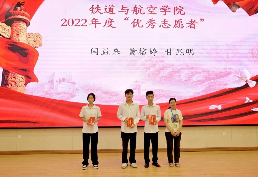 吕艳丽老师为获得铁道与航空学院2022年度“优秀志愿者”的同学颁发荣誉证书