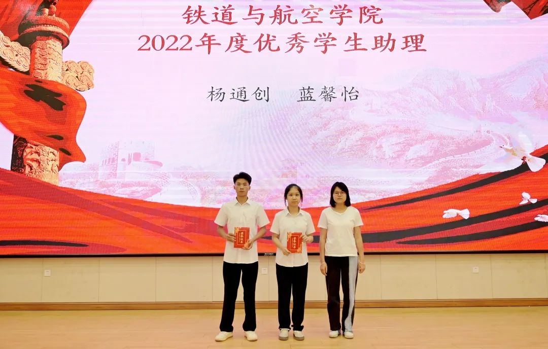 铁道与航空学院党支部副书记宋蓉为获得2022年度优秀学生助理的同学颁发荣誉证书