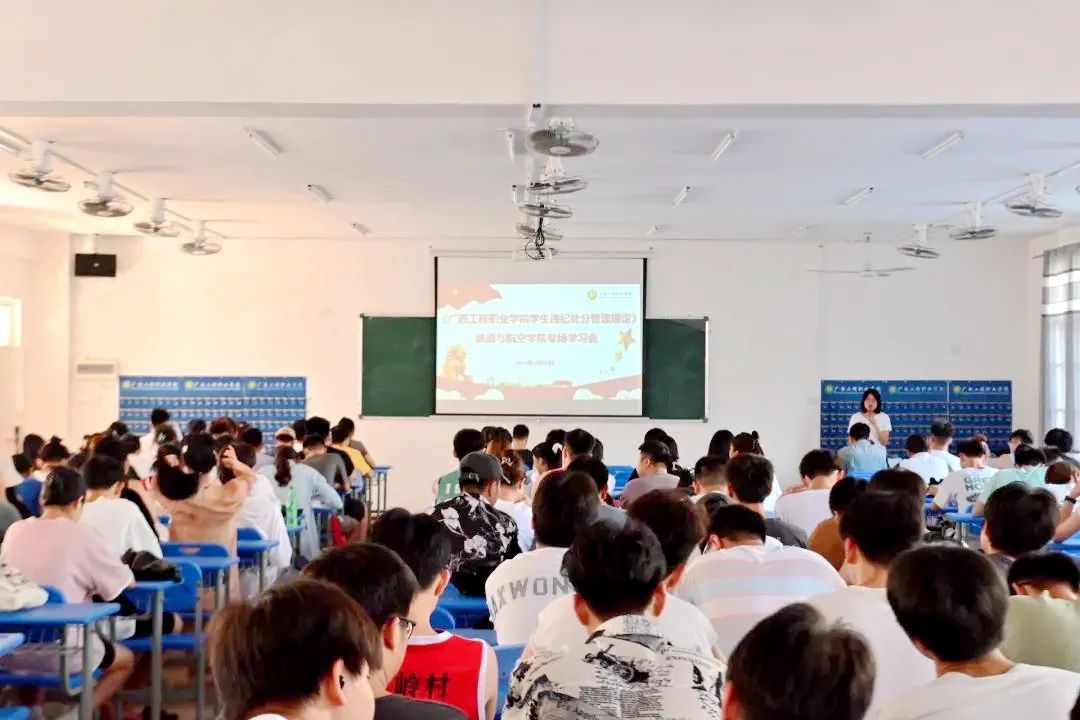 为进一步提高同学们的纪律意识,促进同学们更好地遵守校规校纪,规范言行举止,遵纪守法,弘扬正气,知行统一,教育和引导学生实行自我管理、自我服务、自我教育、自我监督,6月11日下午,铁道与航空学院在经管楼102教室和202教室开展《beat365唯一官网学生违纪处分管理规定》(修订)主题教育学习会,学习会由铁道与航空学院党支部副书记宋蓉、分团委书记谢小玲主讲,学院2021级、2022级全体学生参加此次学习。