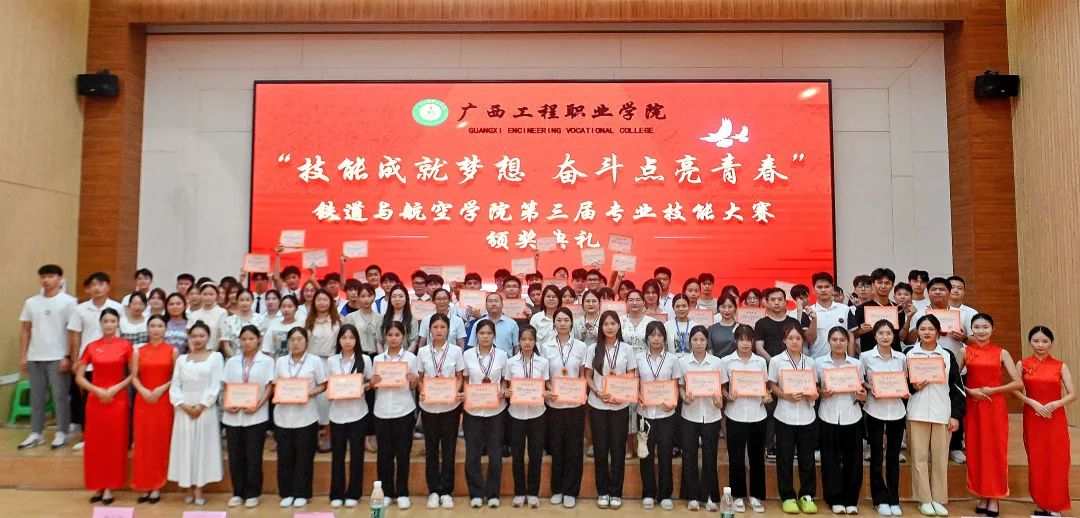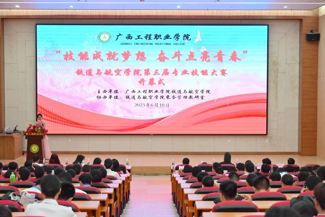 6月19日,铁道与航空学院“技能成就梦想 奋斗点亮青春”第三届专业技能大赛颁奖仪式在图文信息大楼一楼报告厅举行,学校纪委书记、副校长彭高彬,铁道与航空学院党支部书记、院长覃凤姣,铁道与航空学院党支部副书记宋蓉、办公室主任黄晶晶、学生科科长谢小玲等领导、老师出席仪式。