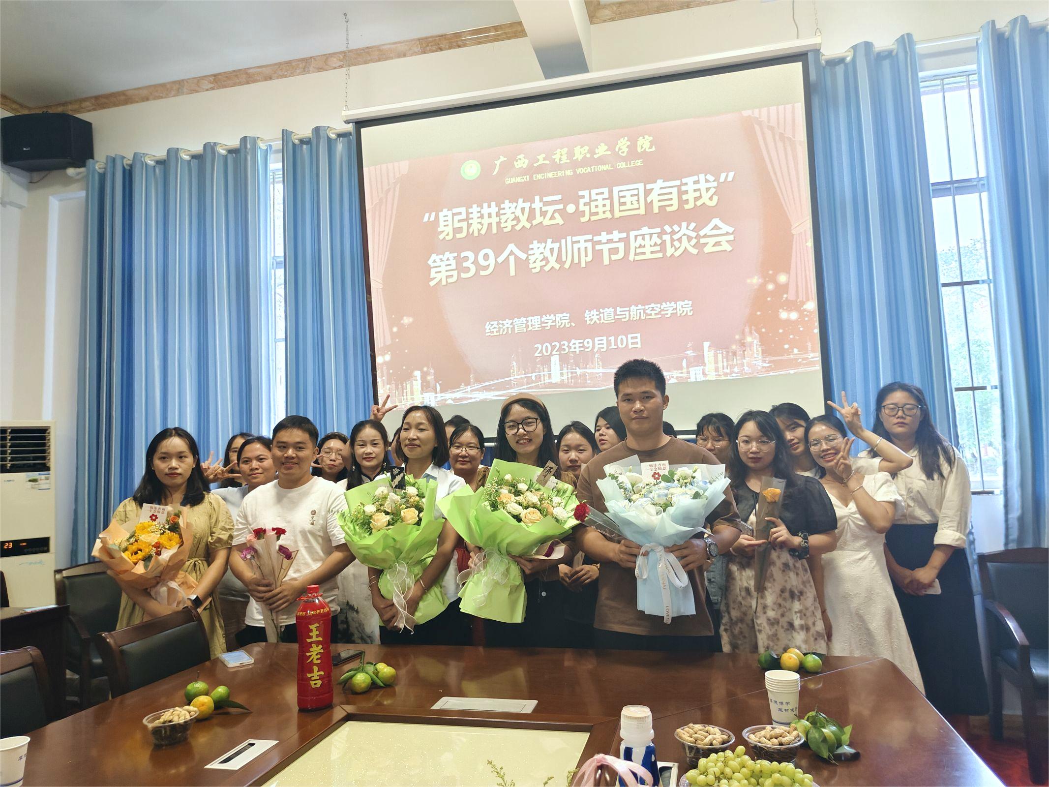 在座谈会上,经济管理学院党支部书记、院长庞英连,铁道与航空学院副院长廖娇,分别讲话,勉励大家要继续开拓进取,定心聚力,自觉贯彻党的教育方针,落实立德树人根本任务,坚定理想信念;树立“躬耕教坛·强国有我”的志向和抱负,坚守三尺讲台,潜心教书育人,奋力书写加快教育强国建设的新篇章。