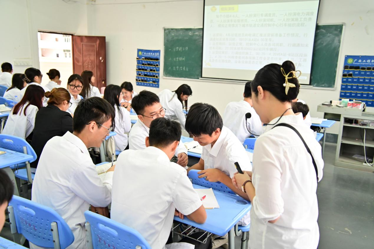 在活动过程中,卢桂玉老师讲授《铁路旅客运输组织》课程,她向学生介绍铁路旅客运输业的基本概念、背景和发展历程;讲解铁路旅客运输在综合交通体系中的地位和作用,教学环节环环相扣。徐琳老师的《城市轨道交通行车组织》课程,她主要讲解正常情况下控制中心行车组织流程,让学生知道控制中心行调工作、平时的行车用品和调度用语。通过模拟演练正常情况下控制中心行车组织一天的工作的方式,让学生在练中学,加深理解控制中心的行车工作。