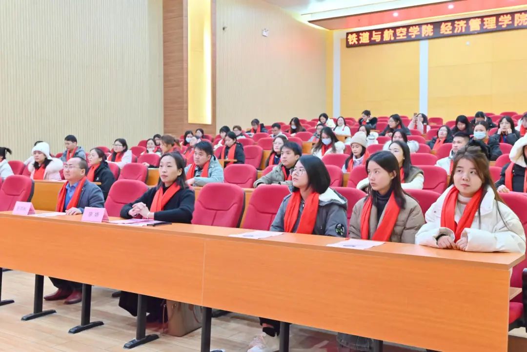 学校纪委书记、副校长彭高彬,经济管理学院党支部书记、院长庞英连,铁道与航空学院党支部书记、副院长廖娇出席会议,两学院全体教师参加会议。会议由黄晶晶老师主持。