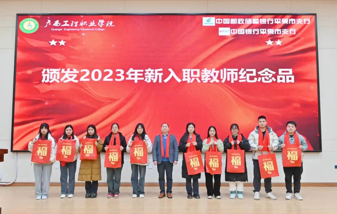 学校纪委书记、副校长彭高彬为2023年新入职教师颁发纪念品