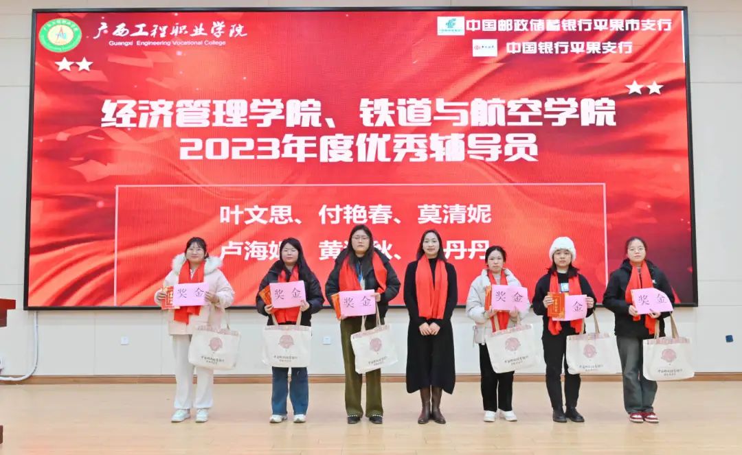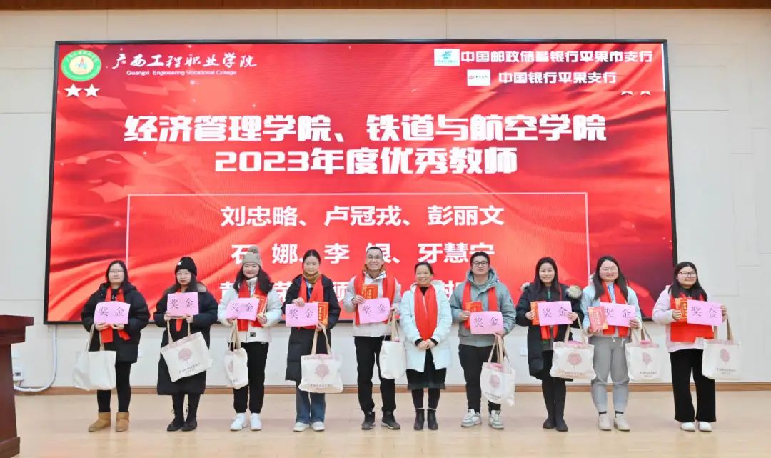 紧接着,铁道与航空学院副书记宋蓉宣读优秀辅导员名单,经济管理学院副书记潘翠萍宣读优秀教师名单,经济管理学院党支部书记、院长庞英连为优秀教师颁发荣誉证书,铁道与航空学院党支部书记、副院长廖娇为优秀辅导员颁发荣誉证书,副校长、纪委书记彭高彬为2023年新入职教师颁发纪念品,并希望获得表彰的先进个人谦虚谨慎、戒骄戒躁,争取取得更优异的成绩;号召学院教师以获奖的个人为榜样,奋勇争先,扎实工作,推动学院的新发展和实现学校的宏伟蓝图而努力奋斗。