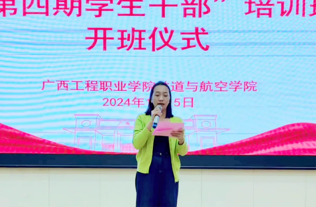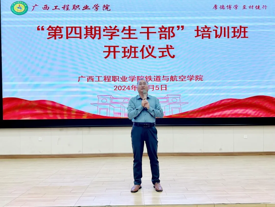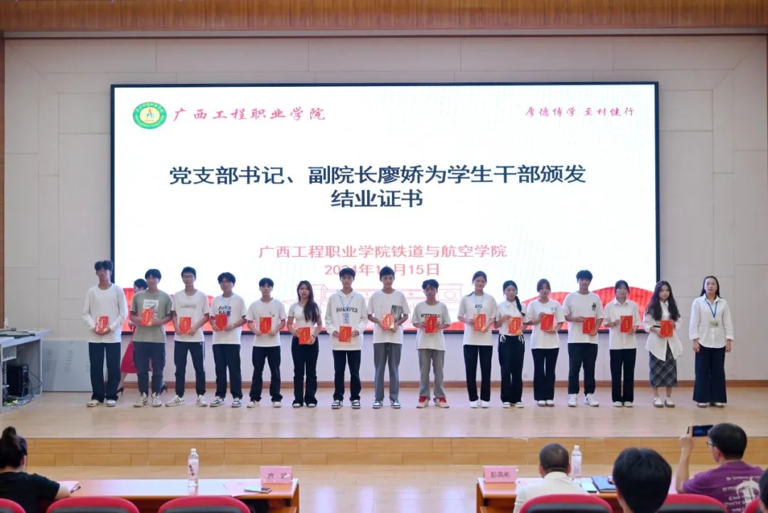 铁道与航空学院第四期学生干部培训班结业典礼于2024年11月15日在图文信息大楼五楼学术报告厅举行,学校纪委书记、副校长彭高彬,学院党支部书记、副院长廖娇等领导出席结业典礼,典礼由谭玉林同学主持。