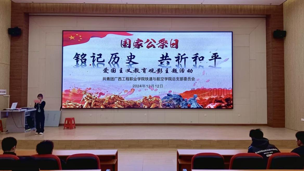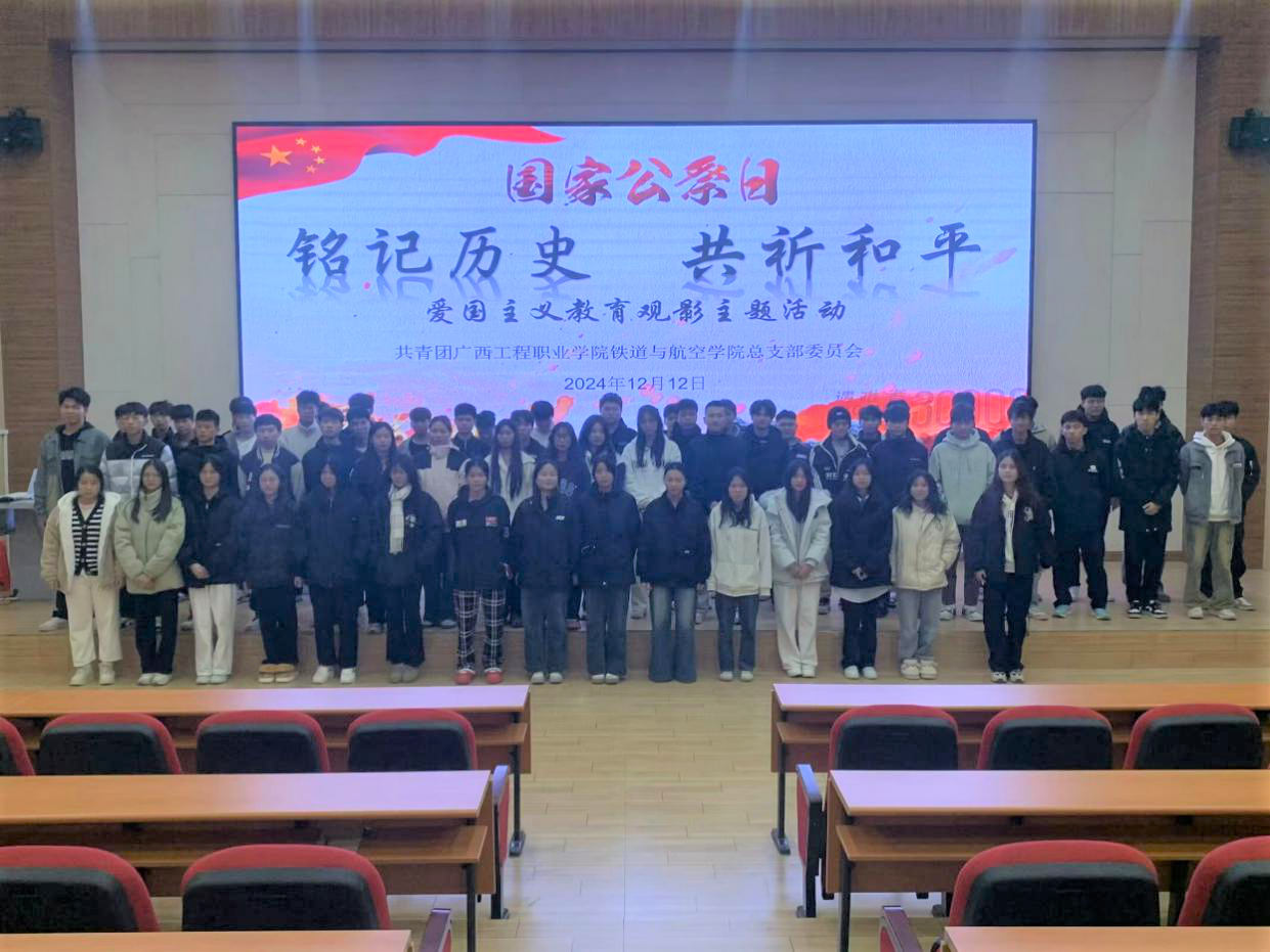 为纪念南京大屠杀死难者“国家公祭日”,引导团员青年们缅怀先辈,铭记历史教训,12月12日下午,铁道与航空学院在学校图文信息大楼五楼报告厅开展“铭记历史,共祈和平”国家公祭日观影活动。