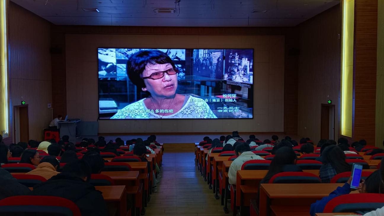 在活动上,同学们认真观看纪录片《1937·南京记忆》,以中国、日本和西方世界对南京大屠杀的时代记忆与反思为脉络,以美籍华裔女作家张纯如、美国导演比尔·古登塔格、日本女教师松冈环、侵华日军南京大屠杀遇难同胞纪念馆馆长朱成山和中国历史学者步平等几位人物为线索,向观众全面展现了当今世界对二战、对发生在中国的这场浩劫的历史认识。