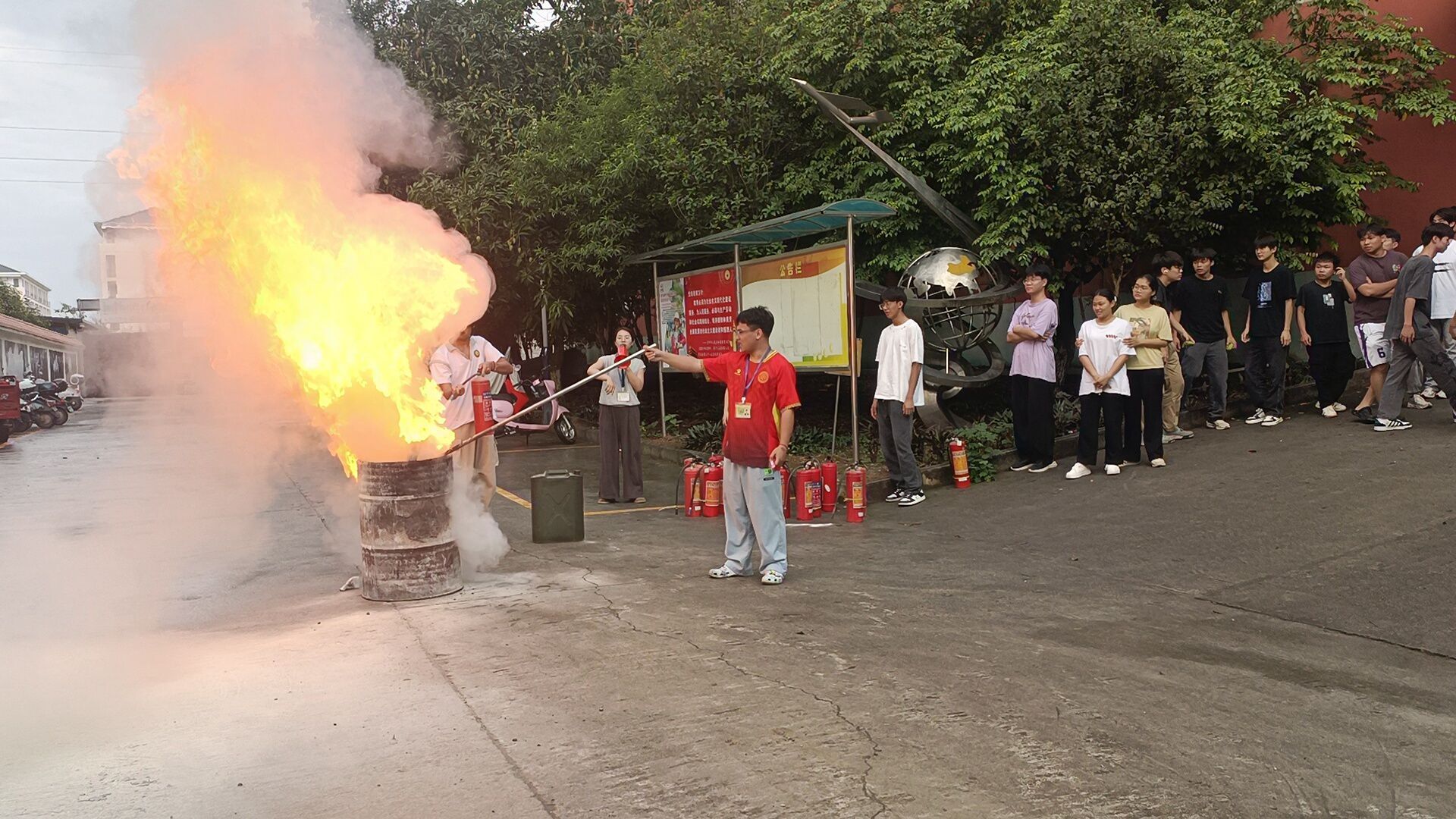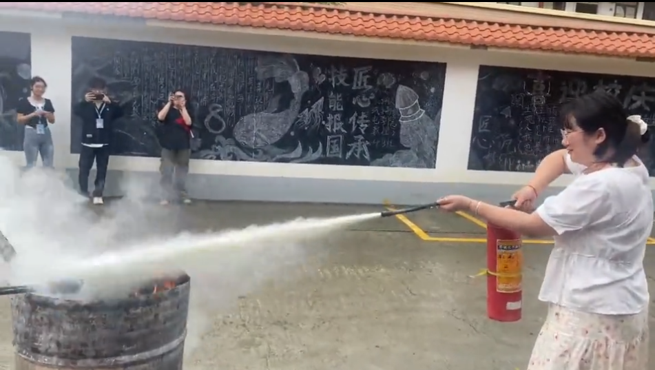 同学们同时进行了模拟灭火实操,真正掌握灭火方法,以保证火灾发生时能利用现有灭火工具从容应对,保证生命安全。通过实战练习,师生不仅基本掌握了消防器材的使用方法,还提高了安全防范意识和防火御火能力。