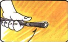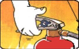 第四步“喷”。往下按压阀,对准火焰根部喷射。