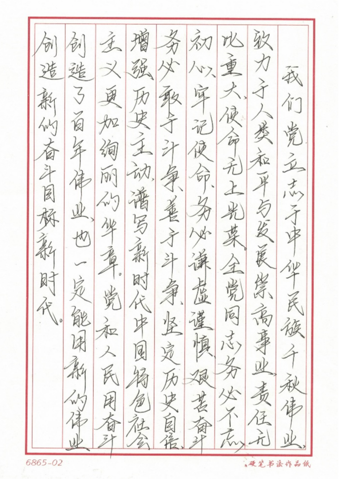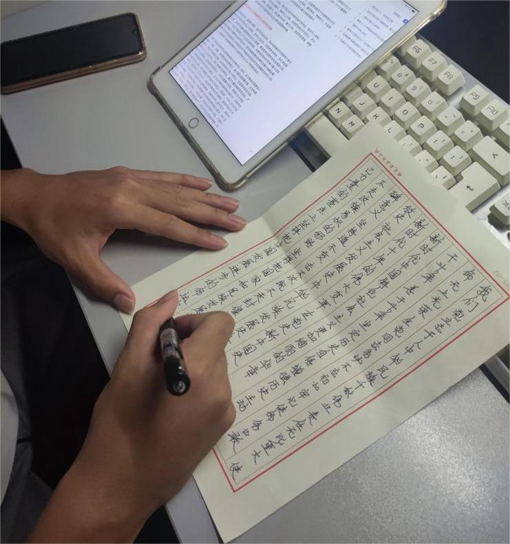 本次比赛作品主要包括硬笔、钢笔和毛笔三种形式,赛前同学们用满怀爱国爱党的精神,以党的二十大报告节选段落为书写内容,用心书写每一笔,撰写每一字。