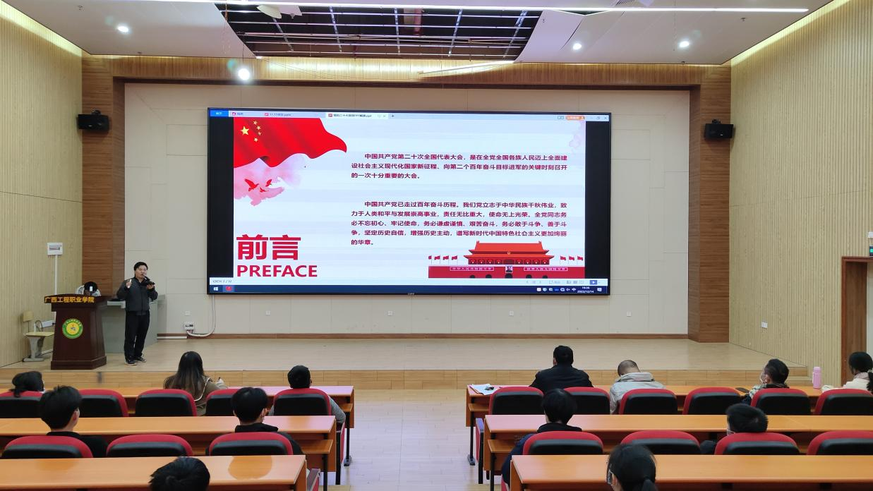 2022年12月14日,土木工程学院党总支在图文信息大楼三楼学术报告厅,召开学习宣传贯彻党的二十大精神宣讲会。土木工程学院党总支书记杨竟同志向土木工程学院教师党员、学生党员、入党积极分子、学生干部作党的二十大精神宣讲。
