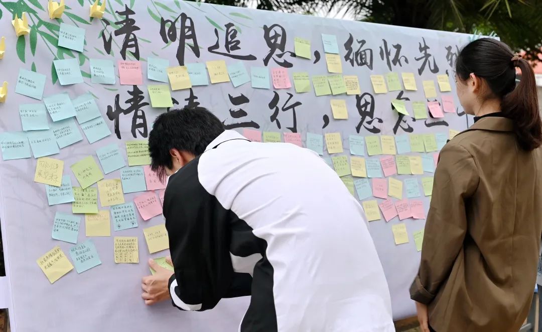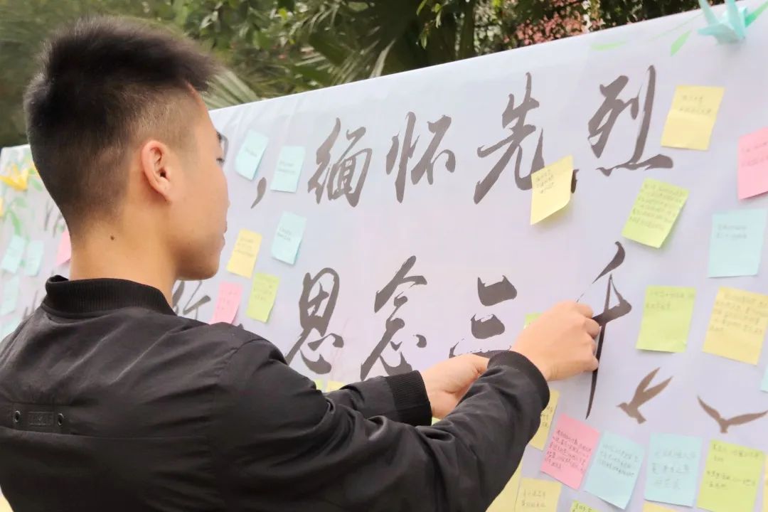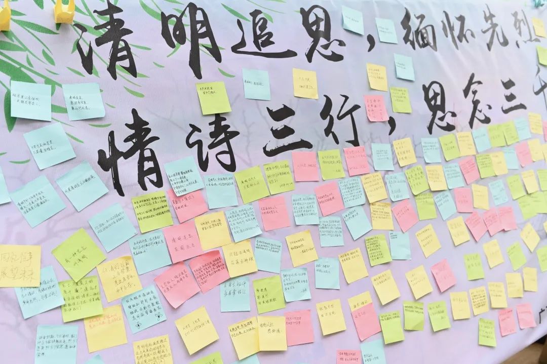 活动中,同学们态度积极,踊跃参加,在便签上书写寄语,歌颂先烈事迹,缅怀革命先烈。除此之外,同学们还在便签上用文字表达认知、尊重、继承和弘扬传统文化的感受和体会,抒发继承先烈遗志、立志报效祖国的志向和情怀。期间,老师们也积极参与到活动中来,表达对革命先烈的敬仰和哀思,进一步增强了为党育人、为国育才的责任感和使命感,为培养担当民族复兴大任的时代新人而努力奋斗。