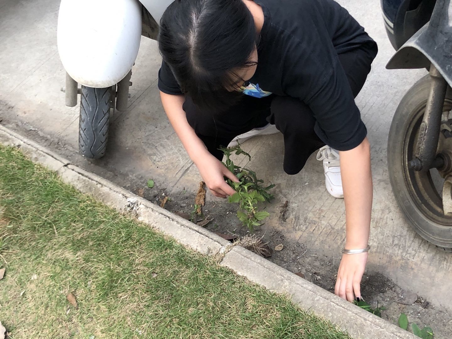 同学们对杂草进行清理