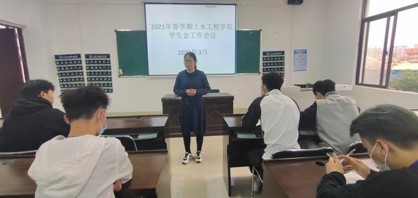 首先由土木工程学院副院长李丽诗指出了近一段工作中出现的问题,问题中主要涉及到对于工作的态度和纪律作风;如何处理好工作与学习的关系等方面;如何做好党员先锋模范作用;强调了这些问题对学生会整体形象及对个人的不利影响,在此希望各位能够积极改正自己工作中的不足的同时也要处理好学习与工作的关系,也要提高党的思想能力。最后树立一个良好的学生会氛围,去做到积极向上充满正能量的先锋模范作用。