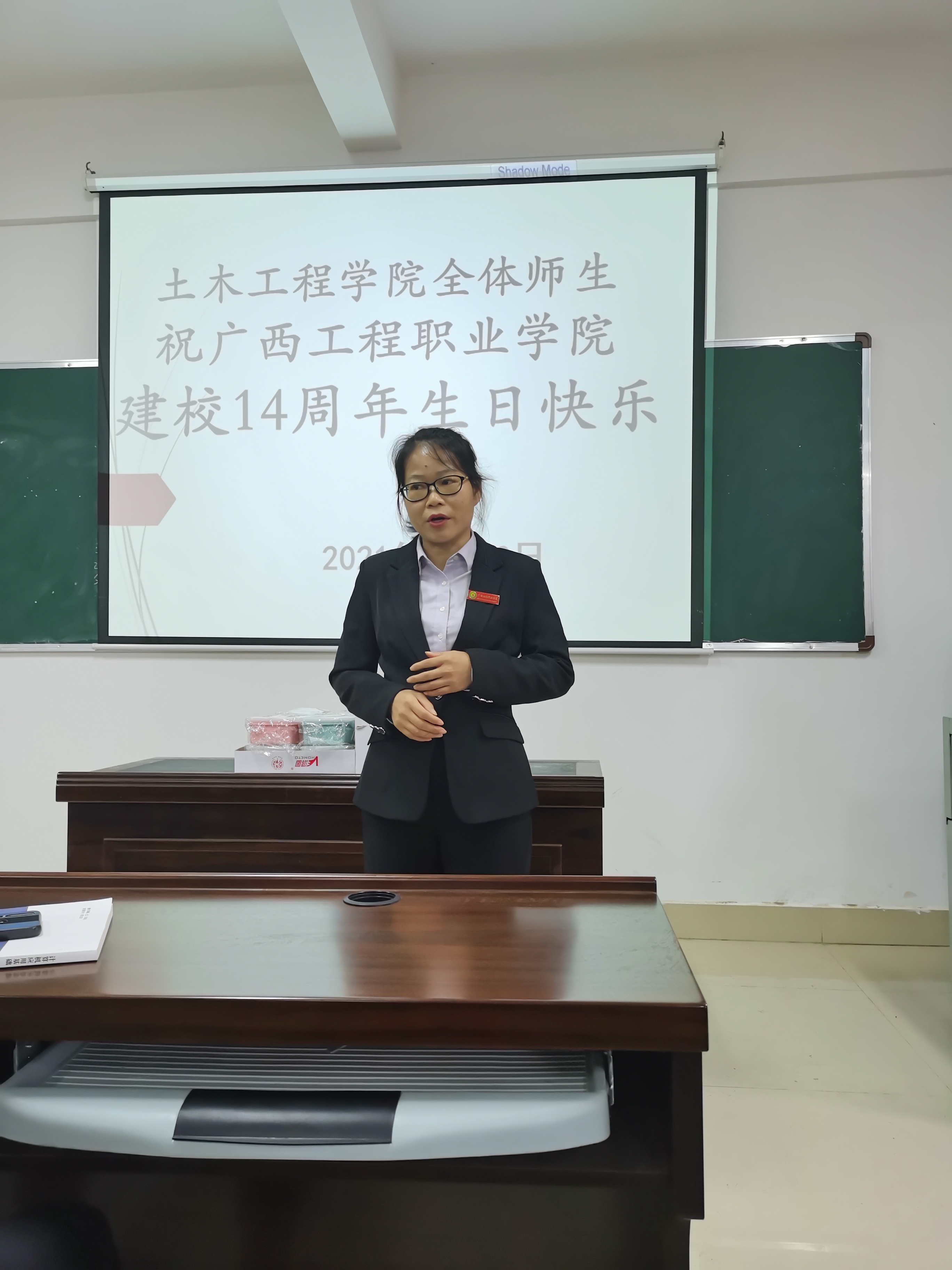 会上,李丽诗副院长讲述了她与学校共同成长的故事。李丽诗副院长从2008年2月入职beat365唯一官网工作,至今在学校任职13年之久。她从学校建设初期的情况、到学校通过基础教学评估、到学校通过人才培养评估、再到现在学校申本工作,讲述了学校14年来的各项教育教学事业的发展历程;从学校刚开始的1000多名学生发展到现在的2万人在校生的办学规模、再到学校现在的1800亩的校园面积、办学环境......全体师生认真聆听李丽诗副院长的讲述,似乎从她的娓娓而谈里看到学校在这片黄土荒坡上一栋栋教学楼破土而出、拔地而起。在上级领导、各级教育部门、社会各界人士、学校党政领导的带领下,beat365唯一官网全体师生员工14年来一路风雨兼程、披荆斩棘、艰苦奋斗、不畏艰难险阻,克服重重困难,共同创建学校美好未来的情景......