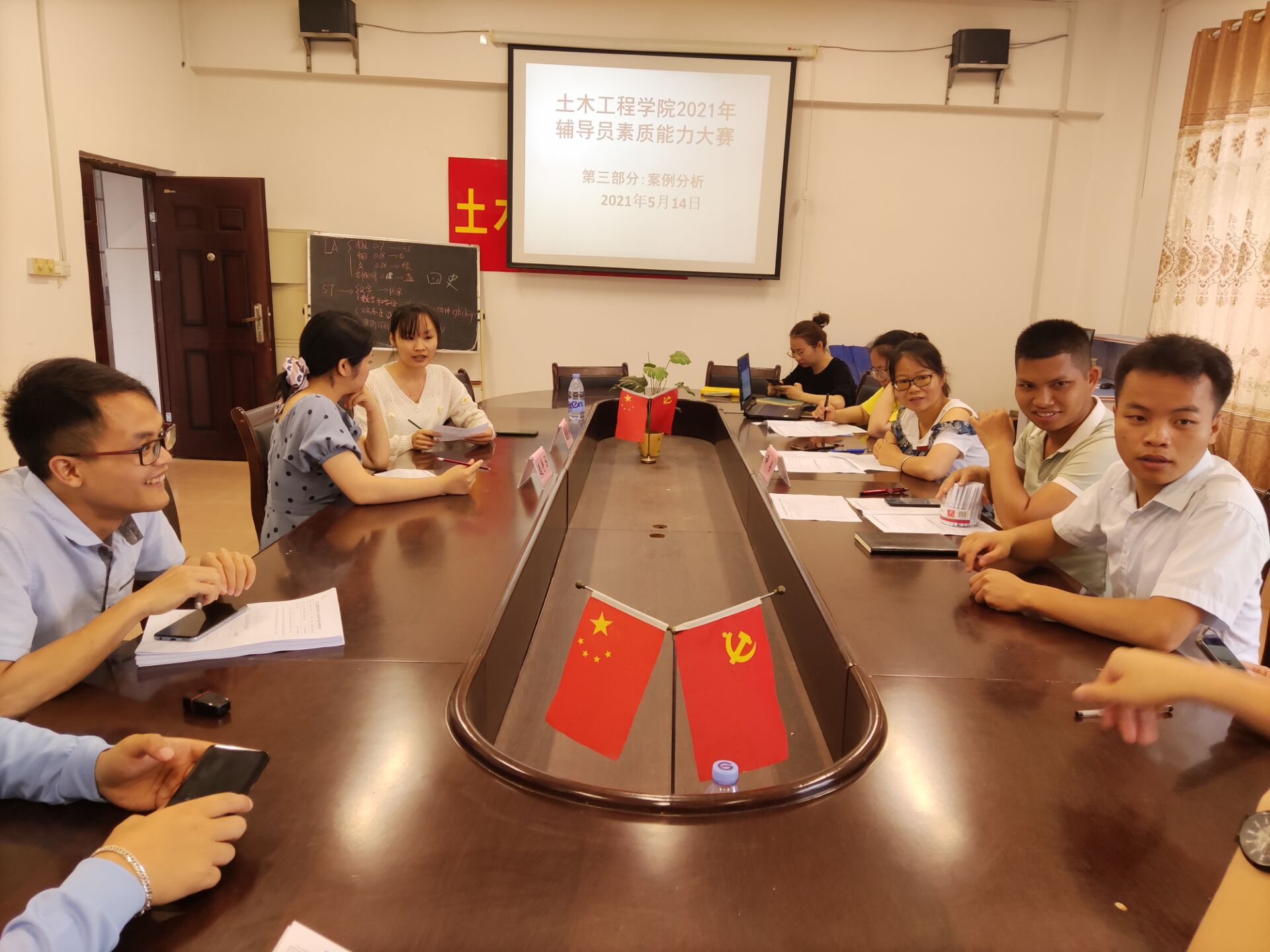 为深入学习贯彻习近平新时代中国特色社会主义思想和党的十九大、十九届二中、三中、四中、五中全会精神,贯彻落实全国高校思想政治工作会议,全国、全区教育大会和习近平总书记关于高校思想政治工作的系列重要论述精神,落实《普通高等学校辅导员队伍建设规定》要求,土木工程学院举行2021年辅导员素质能力大赛。比赛分别安排在5月7日下午、5月8日下午、5月14日下午共3个时间段举行,大赛共分为基础知识测试、谈心谈话、案例分析等三部分内容。