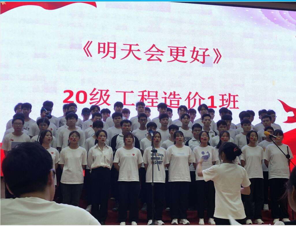 本次比赛以20道桥班高亢的《大中国》拉开了序幕,一首《团结就是力量》嘹亮的歌声唤起了慷慨报国的凌云壮志,一首《歌唱祖国》唱出了同学们对祖国未来充满希望的美好心声,23支参赛队以气势磅礴的合唱演绎了对祖国的热爱。经过激烈的角逐,20工程造价1班的《明天会更好》,20级综合班《中国人》获得本次合唱比赛一等奖。至此,本次红歌大合唱在一片热烈的掌声中落下了帷幕。